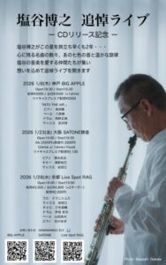 1/23(金)「塩谷 博之 メモリアルライブ」清水 武志 清野 拓巳 岩田 江[ライブ配信あり]